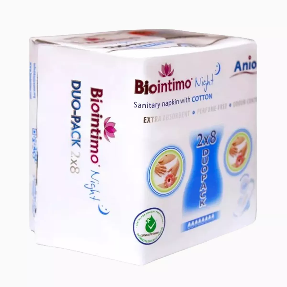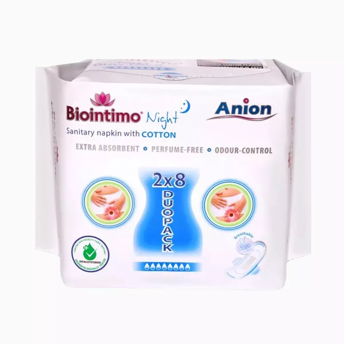 ANION Biointimo - Dámské hygienické vložky s anionovým proužkem - NOČNÍ DUO pack 2x8 ks