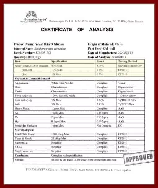 ß-1,3/1,6 D-glukan čistota minimálně 80 %