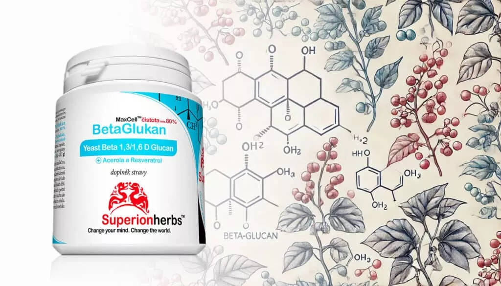 Betaglukan MaxCell™ Superionherbs™ je vysoce účinný přírodní ß-1,3/1,6 D-glukan zpracovaný špičkovou technologií o čistotě min. 80 % a doplněný o Acerolu a resveratrol z křídlatky japonské. Tyto složky díky synergii výrazně zvyšují účinnost základní složky. Za posledních dvacet let patří glukany mezi nejvíce studované imunomodulátory. Betaglukan je unikátní přírodní komplexní polysacharid. Získává se moderními technologickými postupy z buněčných stěn kvasinek Saccharomyces cerevisiae. Důležitým ukazatelem účinnosti betaglukanu je stupeň čistoty. Každé procento čistoty výrazně zvyšuje účinnost. Výzkumy ukazují, že je vhodné betaglukan podávat společně s vitaminem C a resveratrolem.