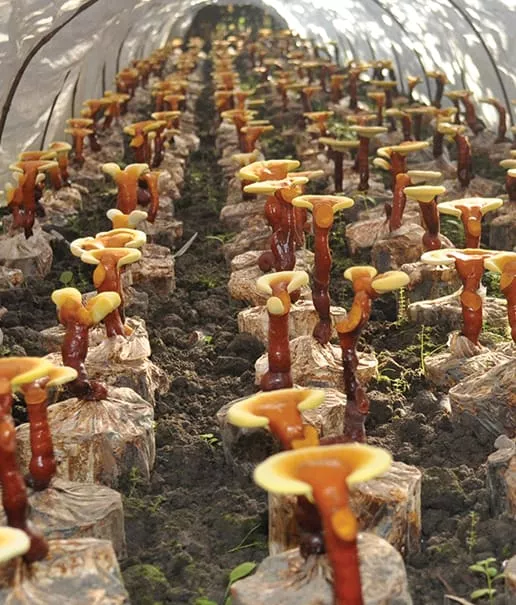 Houby jsou pěstované v přirozeném prostředí na dřevěných kmenech. Kvalita takových hub odpovídá houbám divoce rostoucím resp. je převyšuje, protože díky kontrole faktorů ovlivňujících růst lze docílit optimálního obsahu účinných látek. V případě Ganodermy se jedná o Duanwood Red Reishi.